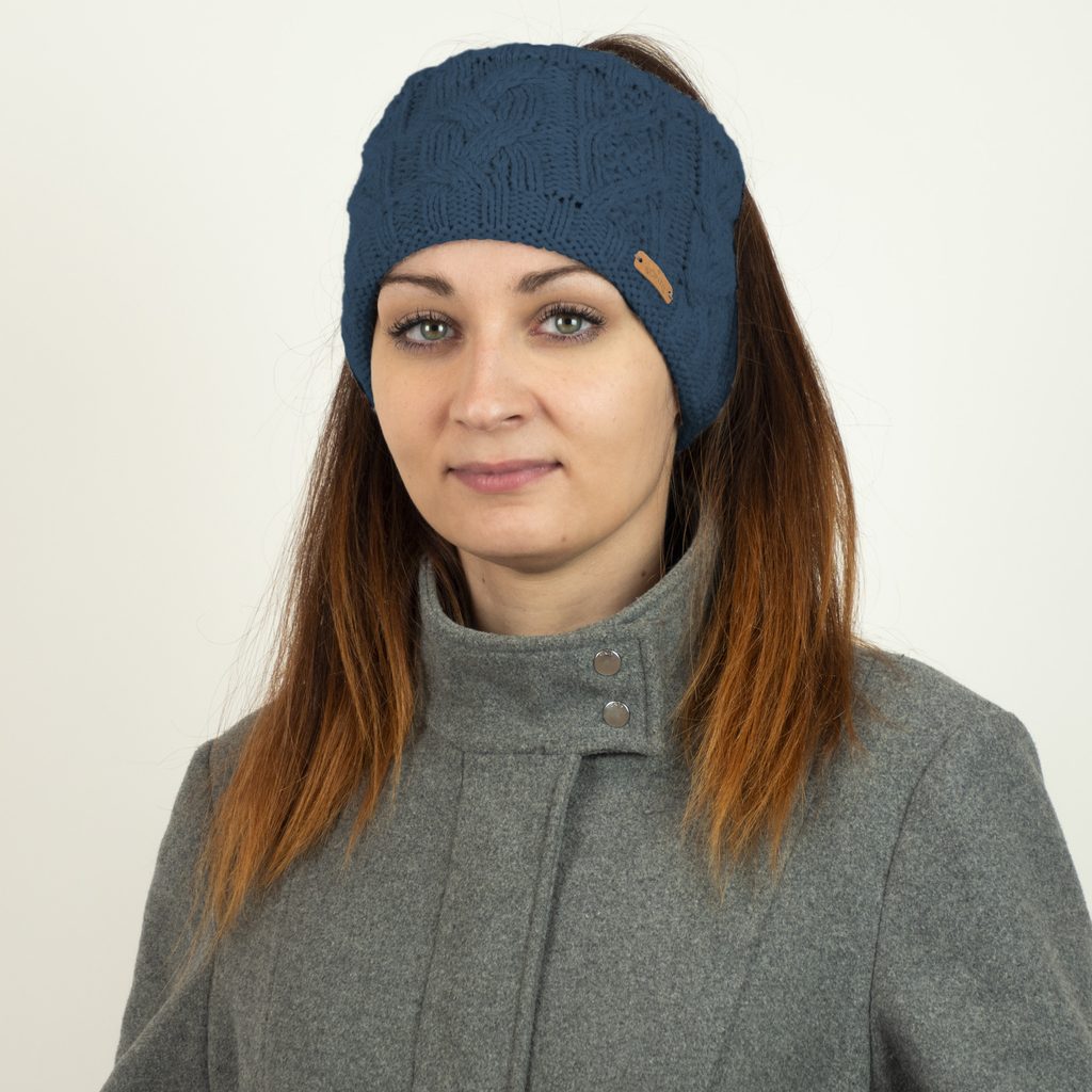 Široká dámska pletená čelenka Džínsová | uni