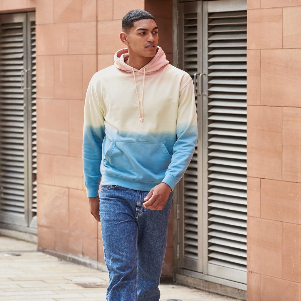 Unisex (dámska aj pánska) batikovaná mikina s kapucňou. Vďaka česanému fleecu vnútri krásne zahreje aj počas chladnejších dní. Má voľný a veľmi pohodlný strih. Módna batika zaručuje, že každá mikina je úplne unikátna. Manžety rukávov a spodný okraj sú rebrované. Mikina má štýlové a praktické klokankové vrecko a kapucňu so sťahovacími šnúrkami.
