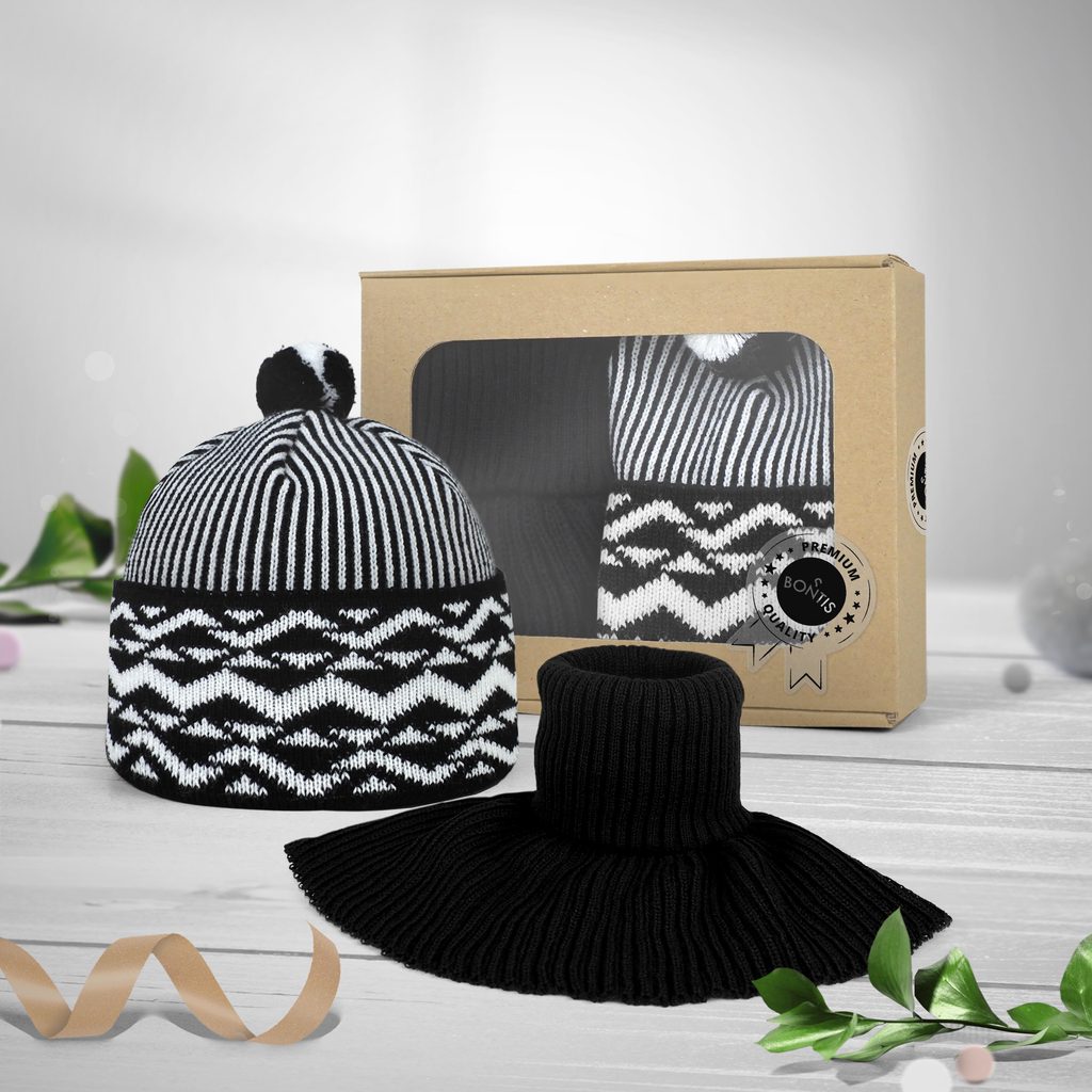 Darčekové balenie: Budajka Bontis s pleteným nákrčníkom Čierna / biela