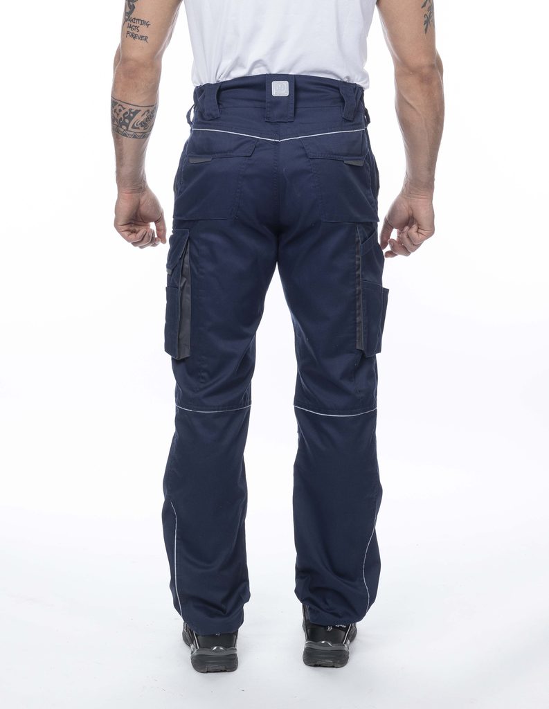 Priedušné pánske pracovné nohavice do pása z príjemného ľahkého materiálu sú skvelou voľbou na leto do interiéru aj exteriéru. Keprová látka je nielen ľahká so zníženou gramážou, ale aj pevná a pohodlná na nosenie. Nohavice majú prepracovanú siluetu v úzkom pohodlnom comfort fit strihu, ktorý je navrhnutý pre maximálne pohodlie bez obmedzovania pohybu. Spodná časť nohavíc je ergonomicky tvarovaná tak, aby kopírovala postavu pri práci. Majú tiež anatomicky tvarované zdvojené kolená a lakťové vrecko na prácu na kolenách. Pás je pružný s gumou, vďaka čomu sú nohavice pohodlné aj pri dlhom nosení. Majú tiež veľké množstvo praktických vreciek: 2 predné, 2 zadné kryté, veľké otvorené vrecko na ľavej nohe kryté klopou, 1 vrecko na zips na mobil do veľkosti 5,6'', vrecko na odlamovací nôž, skrutkovač a tesárske ceruzky a vrecko na pravej nohe na skladací meter, odlamovací nôž a skrutkovač. Nohavice sú vybavené reflexným lemovaním (pásikmi) pre lepšiu viditeľnosť a vyššiu bezpečnosť.