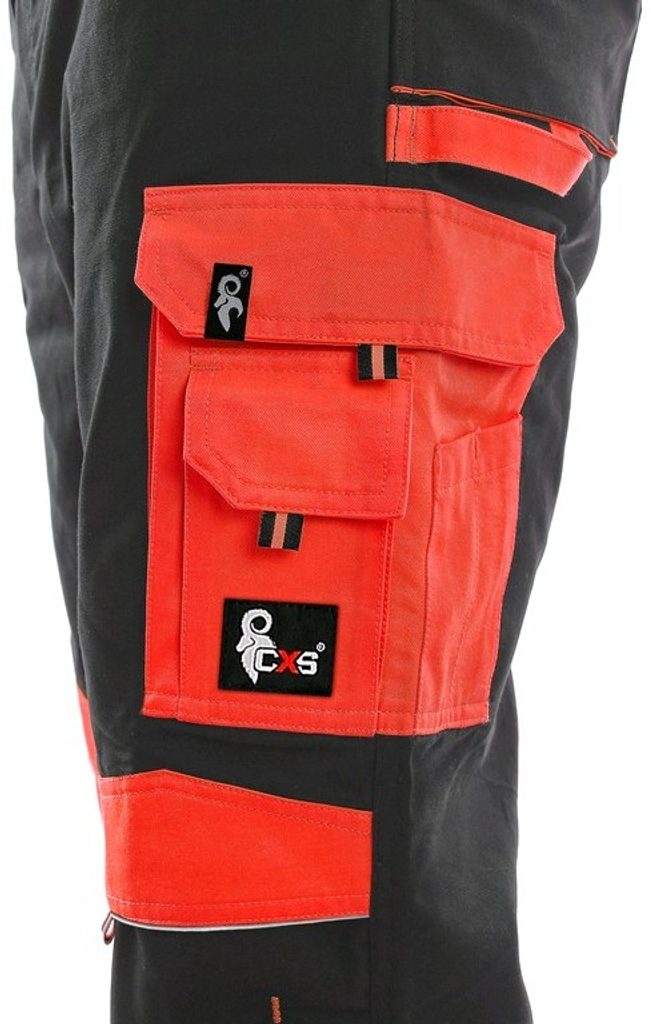 Pánske pracovné nohavice do pása CXS s pevným pásom a pútkami na opasok. Majú zosilnené kolená s možnosťou vloženia kolenných výstuh. Nájdete na nich tiež predné klinové vrecká, zadné vrecká s príklopkami a bočné multifunkčné vrecká vhodné ako na drobné, tak i na väčšie predmety. Nohavice majú tiež reflexné doplnky pre zvýšenie bezpečnosti. Sú vyrobené zo 65% polyesteru a 35% bavlny s gramážou 270 g/m2.