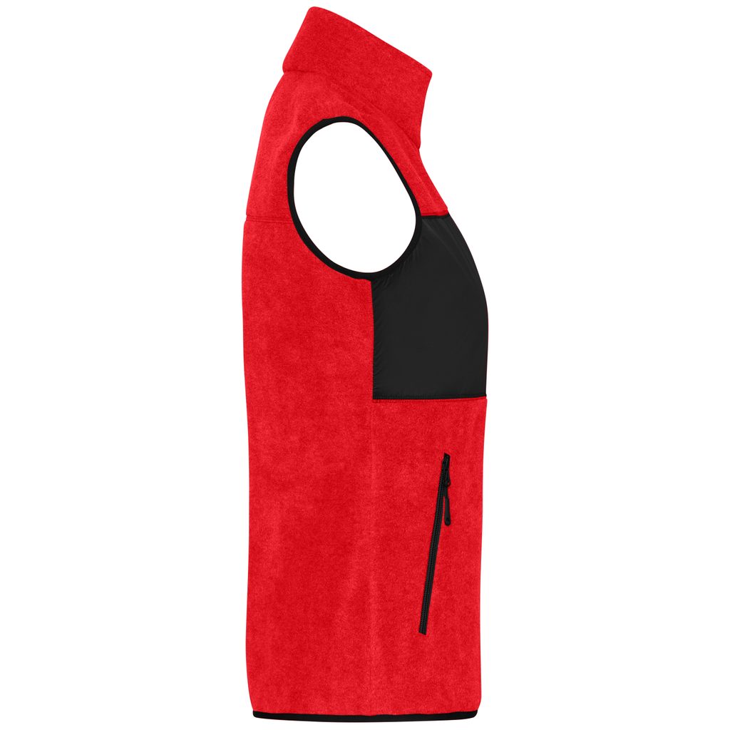 Štýlová dámska fleecová vesta je ušitá v modernom športovom strihu. Je vyrobená z recyklovaného polyesteru, ktorý je mäkký a ľahko sa udržiava. Na hrudi je vsadka z tkanej látky s náprsným vreckom na zips. Vesta má aj 2 bočné vrecká na zips a 2 vnútorné vrecká. Vesta má stojačik a zapína sa na dvojcestný zips. Zipsy sú kvalitné od svetoznámeho výrobcu YKK. Strih je mierne vypasovaný, aby zvýraznil ženskú postavu.