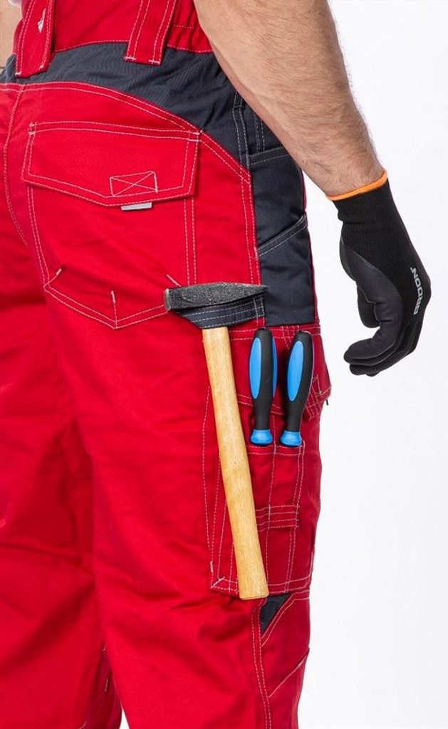 Skrátené pánske pracovné nohavice do pása, vhodné pre výšku postavy do 175 cm. Zaujímavý vzhľad nohaviciam dodáva kontrastné prešívanie džínsovou niťou. Disponujú veľkým počtom vreciek: 2 vrecká na bokoch, 2 zadné vrecká kryté klopami, 2 vrecká na ľavej a pravej nohe, ktoré sú tiež kryté klopami, 1 vrecko na zips na mobilný telefón do veľkosti 5,6", vrecká na skrutkovač, pútka na pero a 2 vrecká na skladací meter na ľavej a pravej strane. Majú tiež vrecká na nákolenníky a pútka na opasok. Nohavice majú pružný pás s gumou, ktorá zaručuje pohodlnejšie nosenie. Zadná časť nohavíc je zvýšená tak, aby zakrývala chrbát aj pri pohybe.