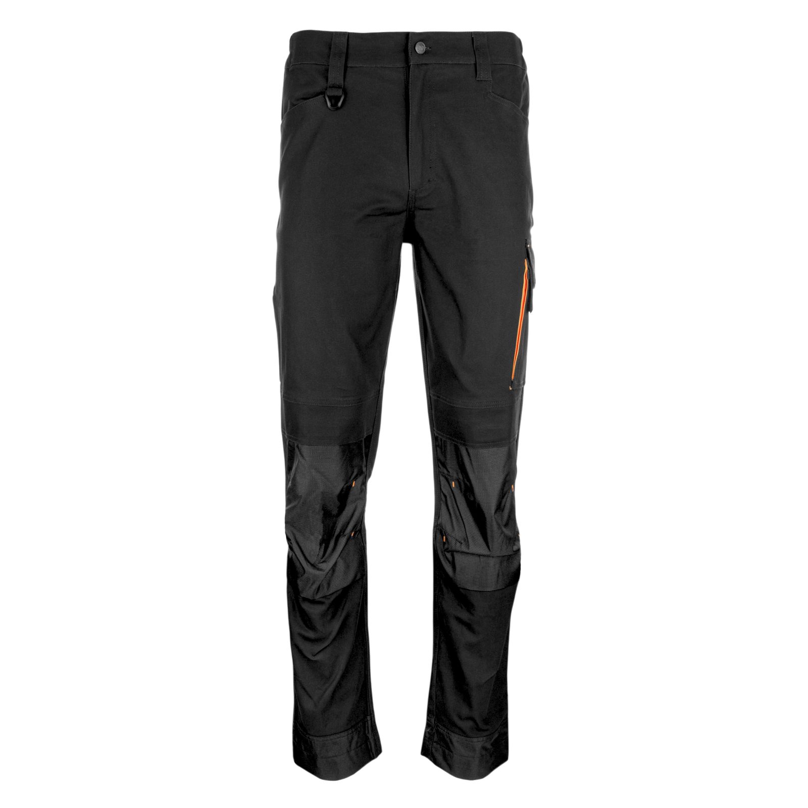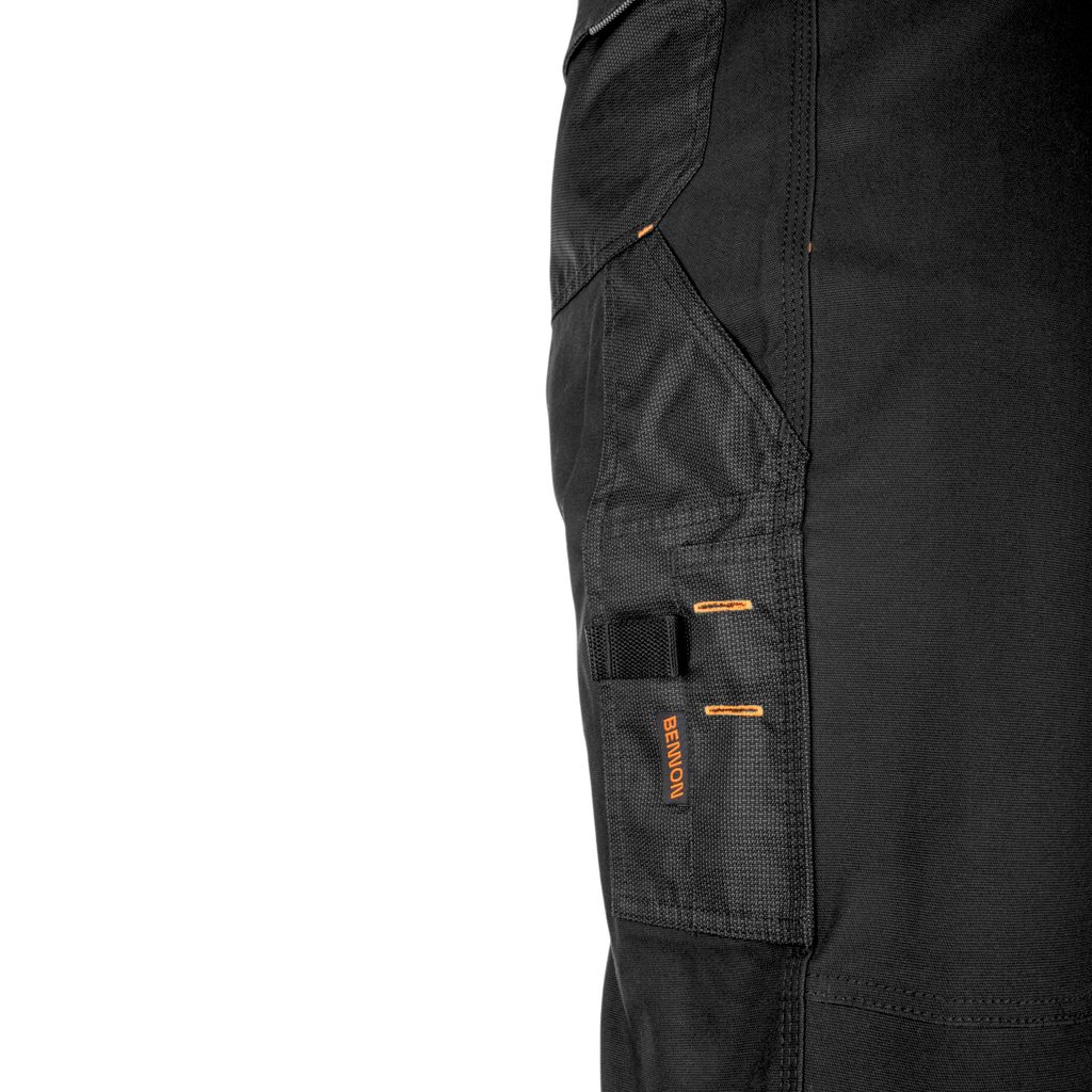 Základ nohavíc tvorí pevná bavlnená tkanina s prímesou elastanu, ktorá spája odolnosť s potrebnou pružnosťou. Materiál je príjemný na nosenie, dobre priedušný a zároveň dostatočne pevný aj pre náročnejšie pracovné podmienky. Nohavice sa tak prirodzene prispôsobia pohybu a neobmedzujú pri chôdzi, ohýbaní ani pri práci v kľaku.