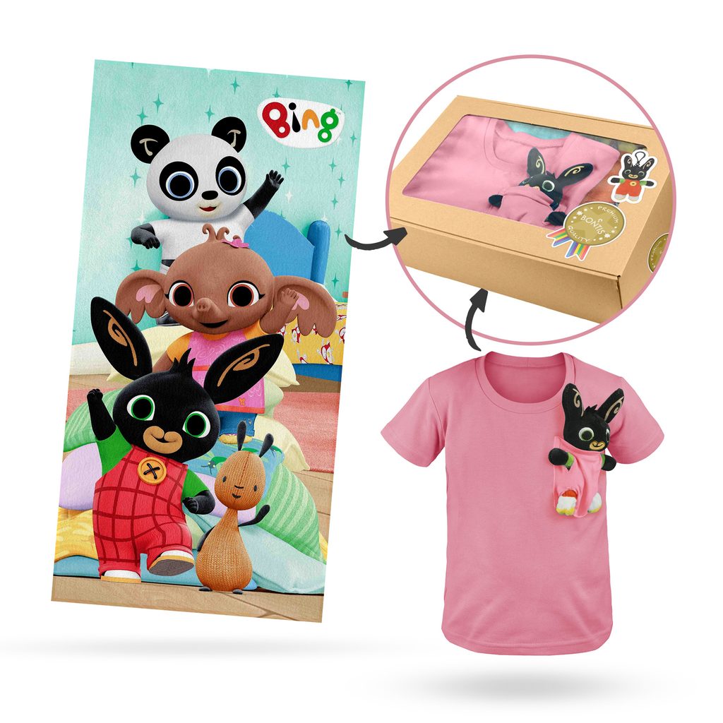 Krásny darčekový set pre malých fanúšikov zajačika Binga. V balení nájdete tričko s vreckom na hračky, plyšového Binga a osušku s veselým motívom zajačika Binga. Tričko je ušité v Českej republike z kvalitnej bavlny s prídavkom elastanu, takže je mäkké, pružné a rozmerovo stabilné. Kapsička na…