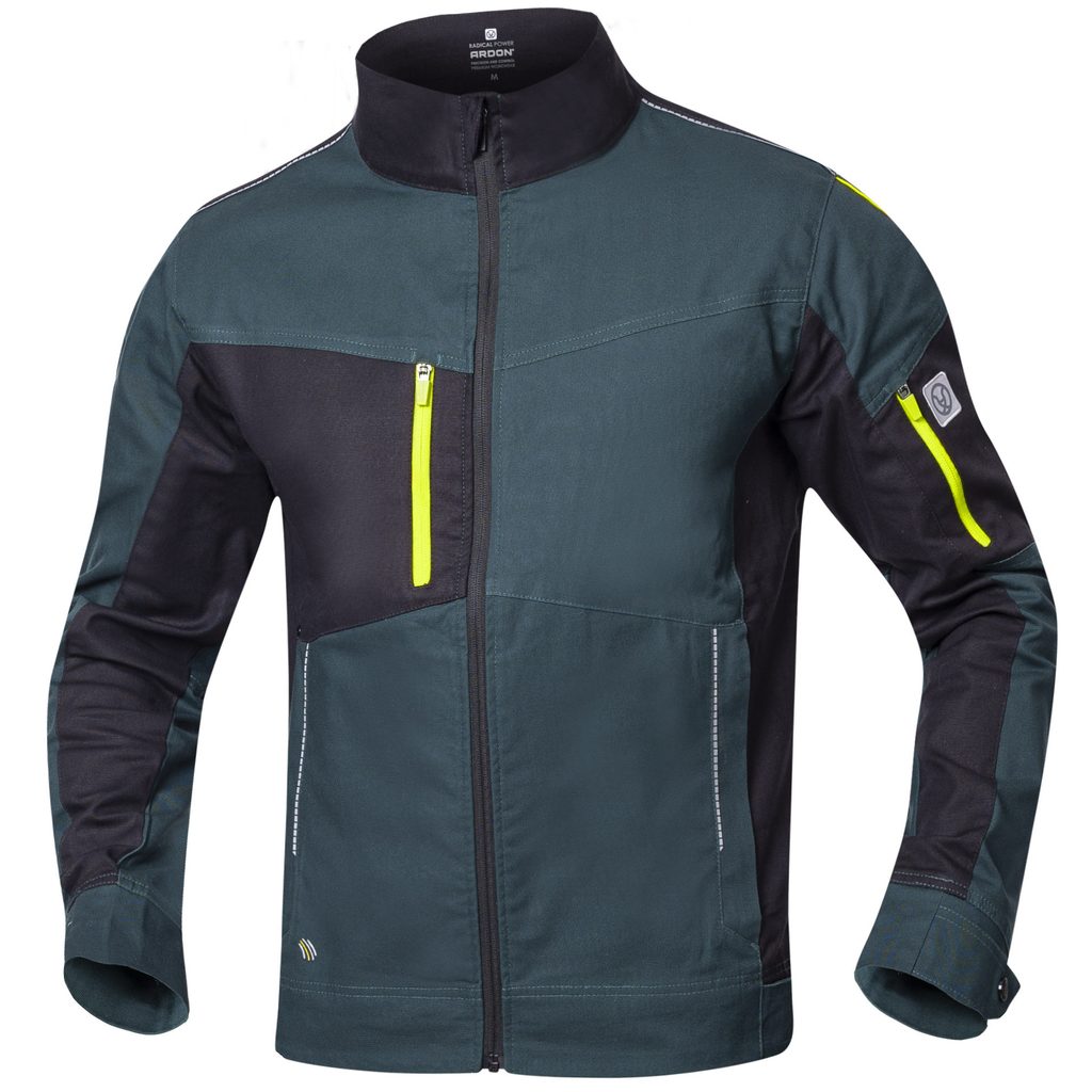 Bavlnená strečová montérková blúza je vyrobená zo špeciálneho materiálu Amalytton®, ktorý je pevný a odolný a zároveň si zachováva pružnosť a všetky výhody prírodných materiálov, ako je priedušnosť a príjemný pocit pri nosení. Blúza má stojací golier a anatomicky tvarovaný a funkčný slim fit strih. To spolu s funkčnými časťami v oblasti chrbta, ktoré sú vyrobené z mimoriadne pružného materiálu Tabiflex®, umožňuje maximálnu voľnosť pohybu aj počas náročných fyzických aktivít. Zapína sa na zips a v zadnej časti blúzy má vetranie. Má 1 náprsné vrecko na zips, 1 vrecko na zips na ľavom rukáve a 2 praktické bočné vrecká na zips. Šírku manžiet rukávov a spodného lemu blúzky možno ľahko upraviť pomocou gombíkov. Blúza je vybavená reflexnými pásikmi a doplnkami hi-vis, ktoré zaručujú lepšiu viditeľnosť aj za zhoršených svetelných podmienok.