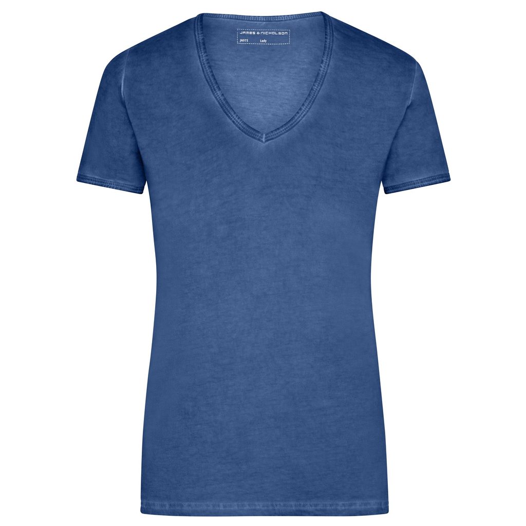 Módne dámske bavlnené tričko s výstrihom do V má zaujímavý a štýlový vzhľad vďaka modernej technike sprejového farbenia. Táto technika spočíva v striekaní bieleho trička na už ušité biele tričko. Vzniká tak krásny dizajn s mnohými farebnými variáciami. Má priliehavý, tvarovaný strih, ktorý sa prispôsobí ženskej postave, a rukávy s úzkym lemom.