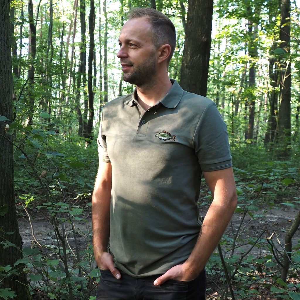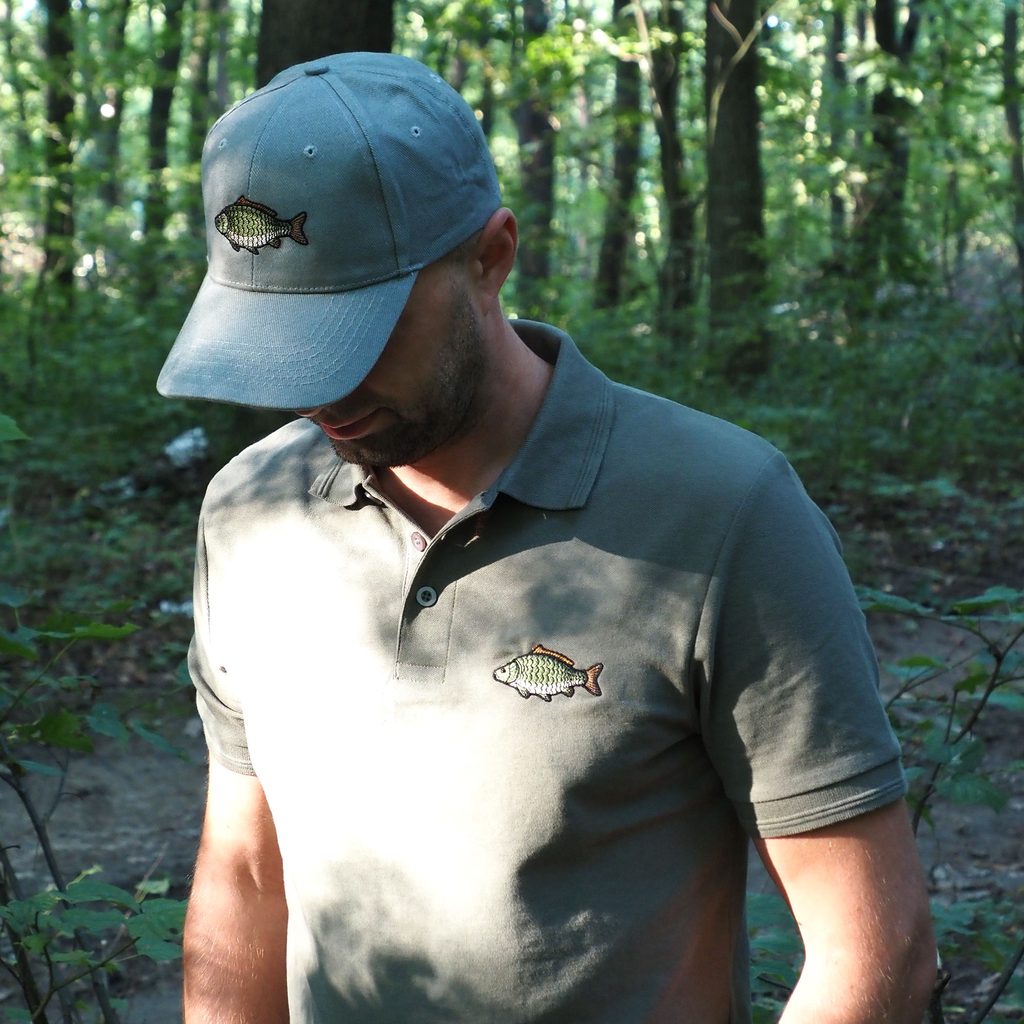 Štýlová polokošeľa s originálnou hobby výšivkou kapra je vyrobená z príjemného materiálu vo vyššej gramáži. Strih je klasický s bočnými švami. Golierik a lemy rukávov sú z rebrovej pleteniny s dvojitou reliéfnou vlnkou po obvode. Polokošeľa má légu s 3 gombíkmi vo farbe materiálu.