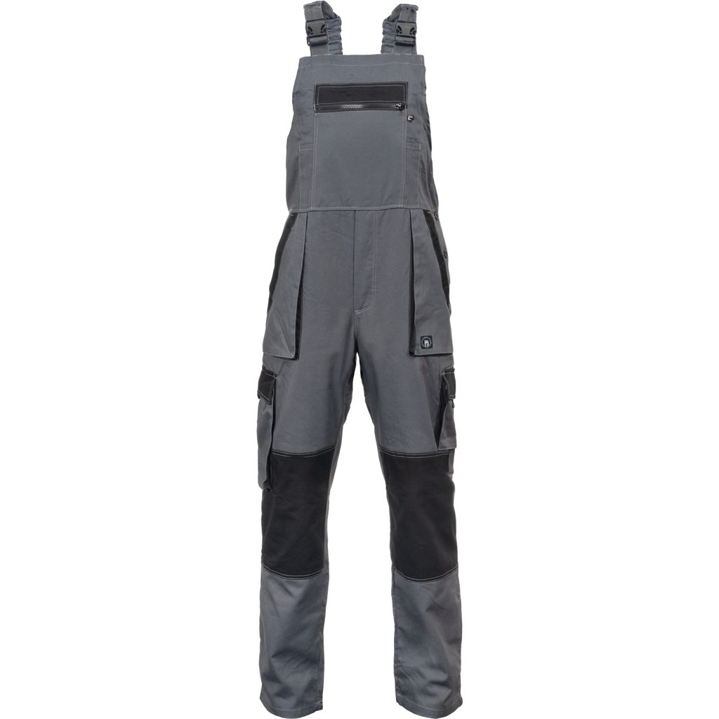 Pohodlné pánske pracovné nohavice s náprsenkou z odľahčeného materiálu zo 100 % bavlny, v ktorých sa budete cítiť pohodlne aj pri práci v teplejších dňoch alebo vo vykurovaných priestoroch. Majú elastický pás pre lepšie prispôsobenie a široké traky s plastovými prackami. Oblasť kolien, ktorá býva na nohaviciach najviac namáhaná, je kvôli väčšej odolnosti zosilnená. K dispozícii je aj niekoľko praktických vreciek: 1 veľké náprsné vrecko na zips, 2 predné vrecká, 2 stehenné vrecká a 2 zadné vrecká. Dĺžku nohavíc možno predĺžiť až o 5 cm.