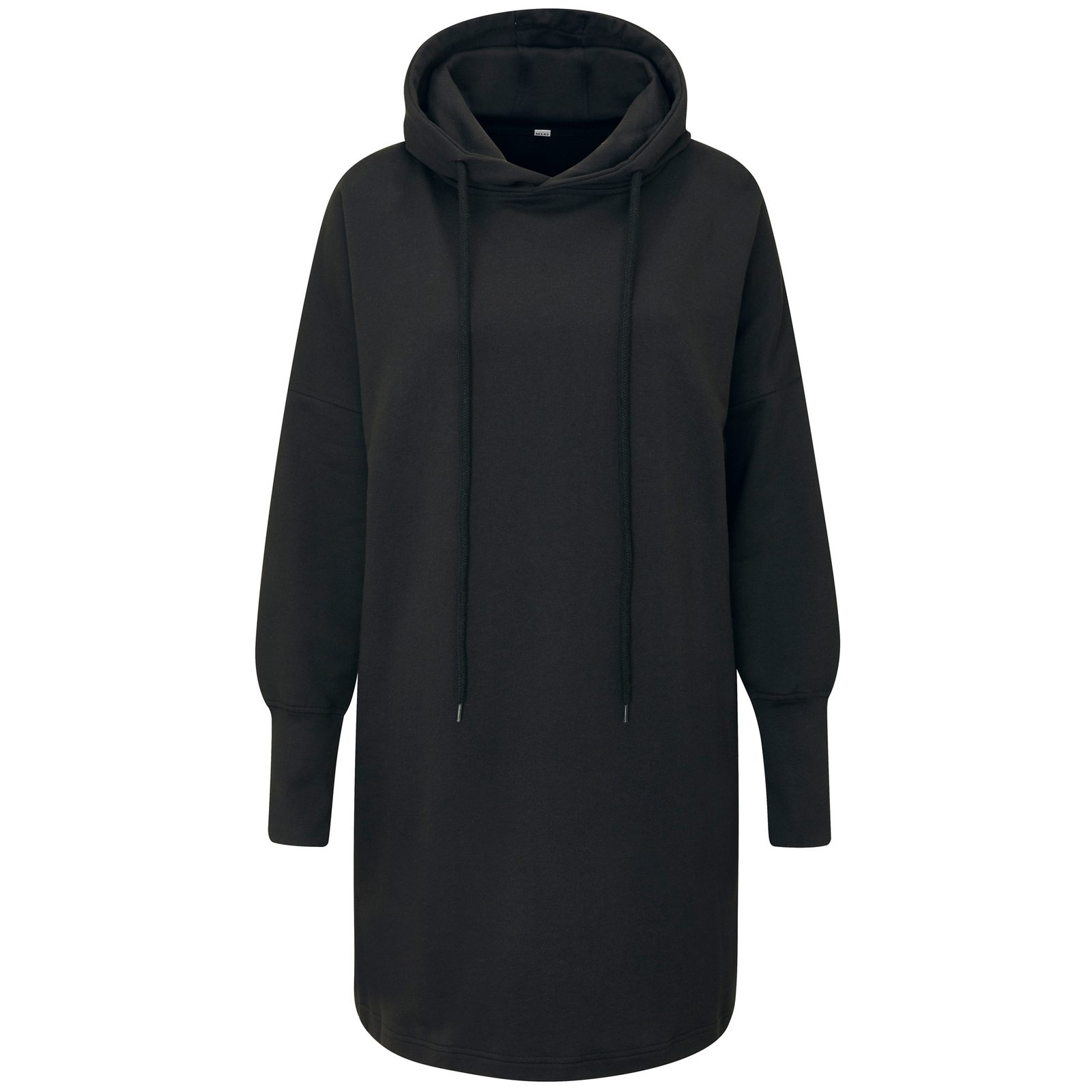 Módne mikinové šaty s dlhým rukávom a kapucňou sú vyrobené z kvalitného materiálu z kombinácie biobavlny a recyklovaného polyesteru (rPET). Má moderný voľný oversize strih so spadnutými ramenami. Rukávy sú zakončené dlhými manžetami s otvormi na palec. Ležérny vzhľad dopĺňajú mimoriadne dlhé šnúrky…