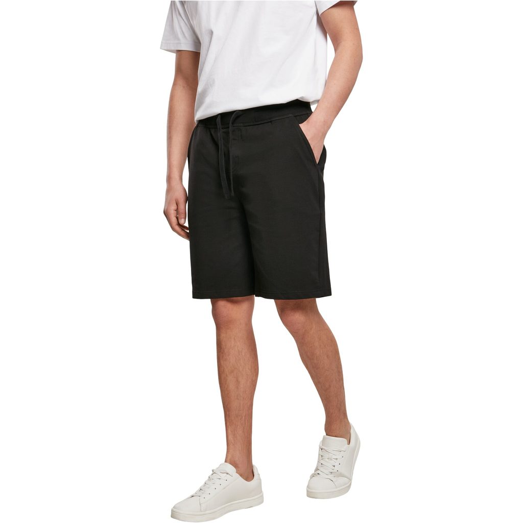Pánske teplákové šortky s ležérnym strihom sú ideálnou voľbou na voľnočasové aj športové aktivity. Tieto šortky majú praktické vrecká na bokoch a jedno vrecko na zadnej strane, ktoré ponúkajú dostatok úložného priestoru na drobnosti. Sú vyrobené z mäkkej tkaniny a majú široký elastický rebrovaný pás, ktorý poskytuje výnimočné pohodlie pri nosení. Pás sa dá ľahko upraviť pomocou šnúrky.