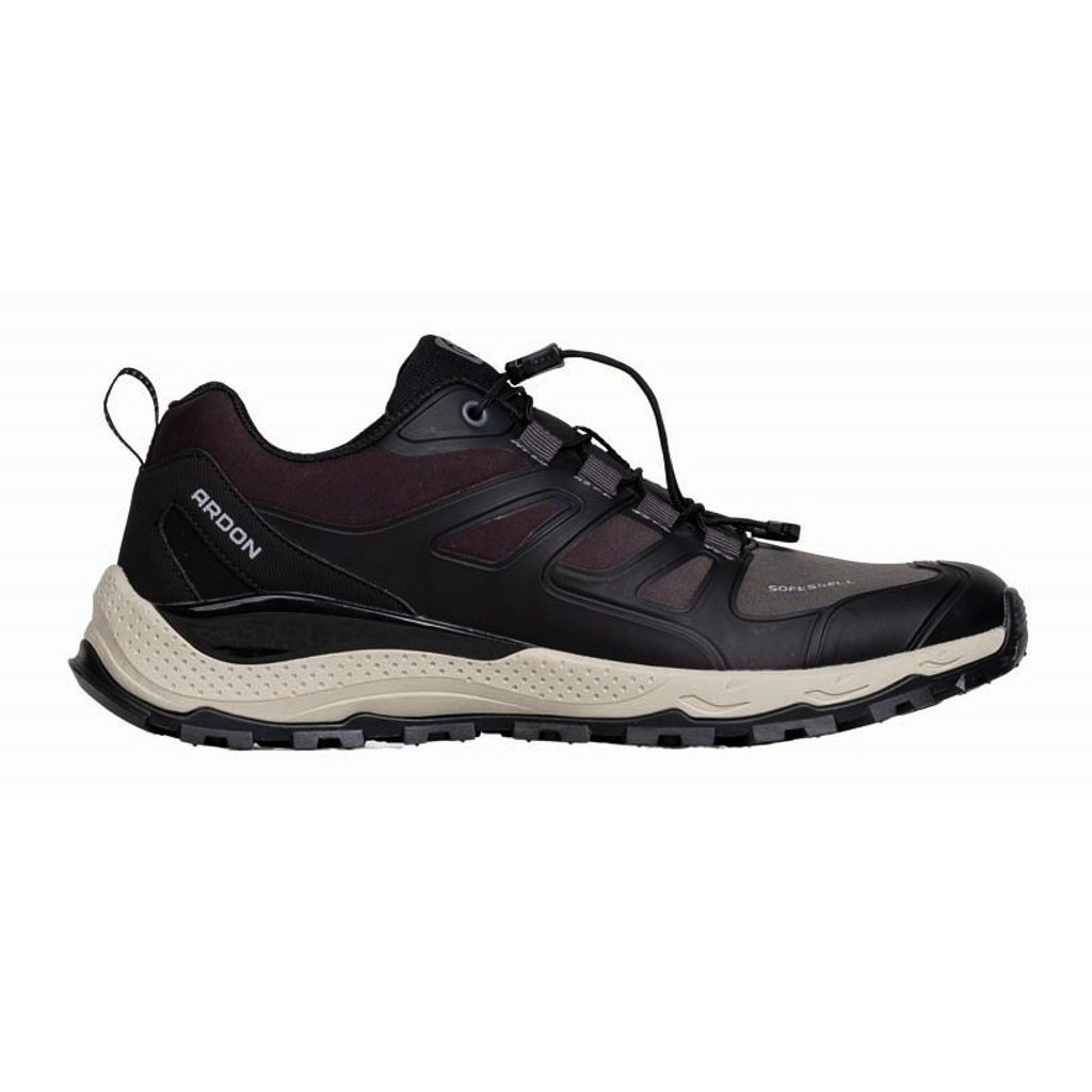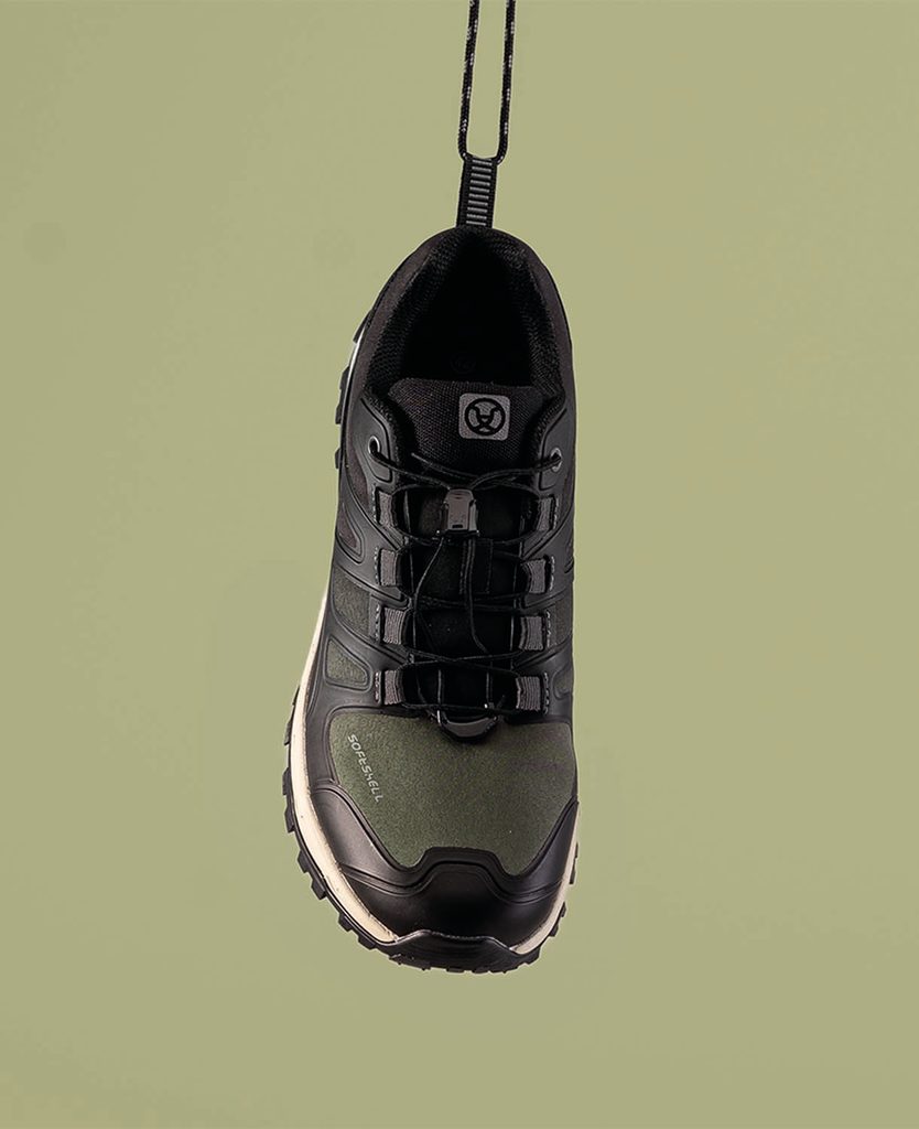 Zvršok obuvi je vyrobený z odolného softshellového materiálu doplneného o bezšvové TPU vystuženie. To zvyšuje stabilitu chodidla a zároveň chráni obuv pred rýchlym opotrebovaním. Vnútorná priedušná sieťovinová podšívka pomáha udržiavať príjemnú klímu vo vnútri topánky a efektívne odvádza vlhkosť.