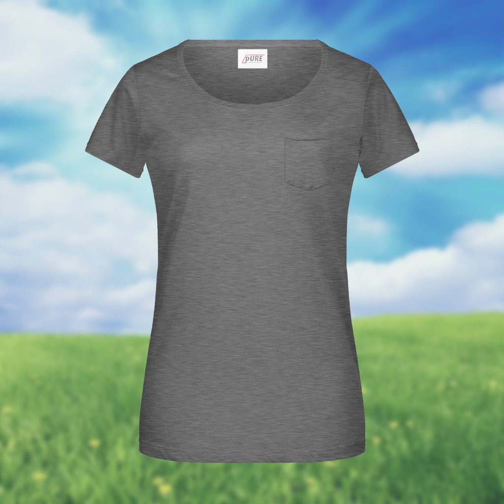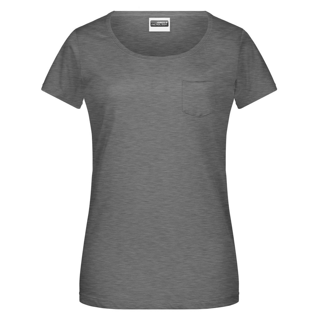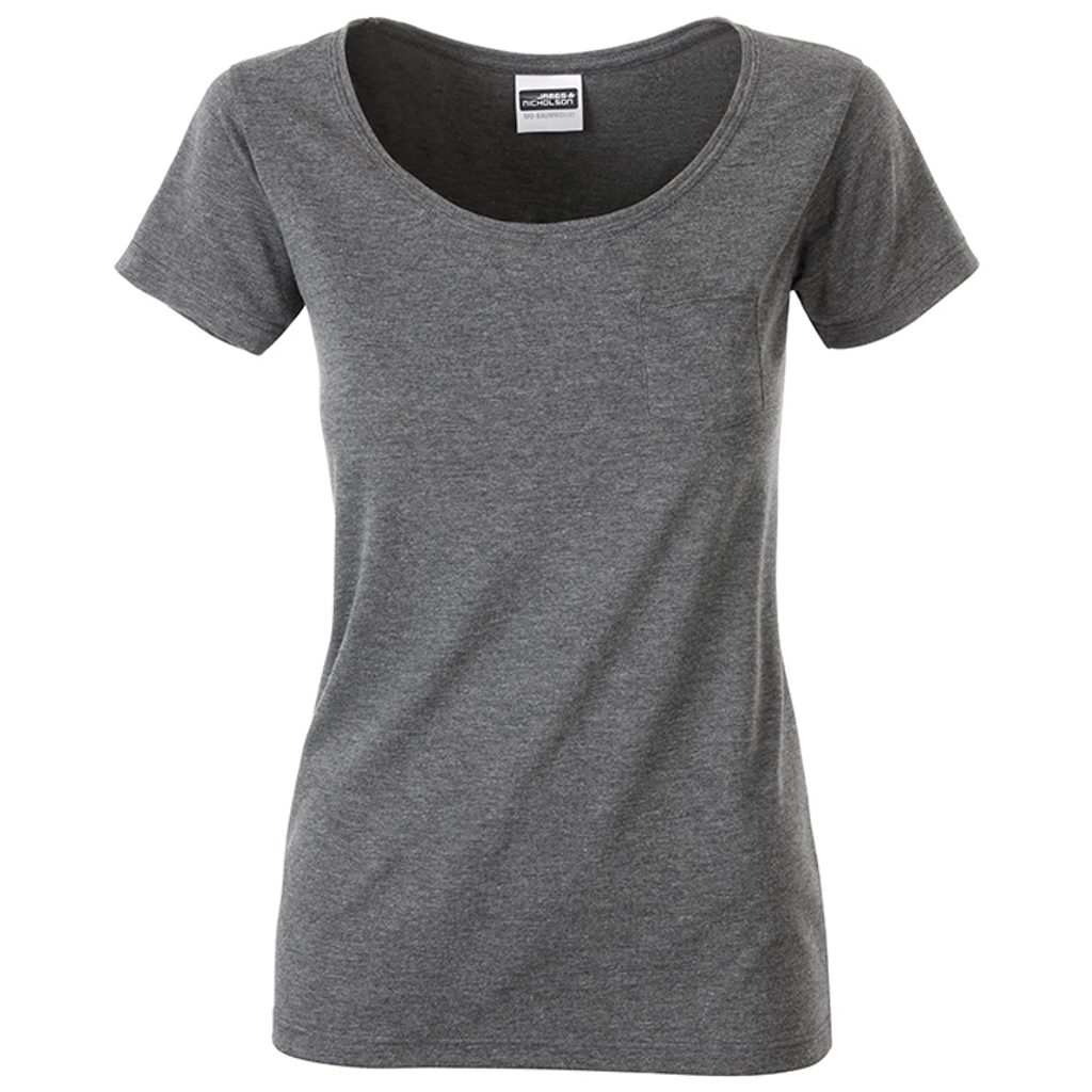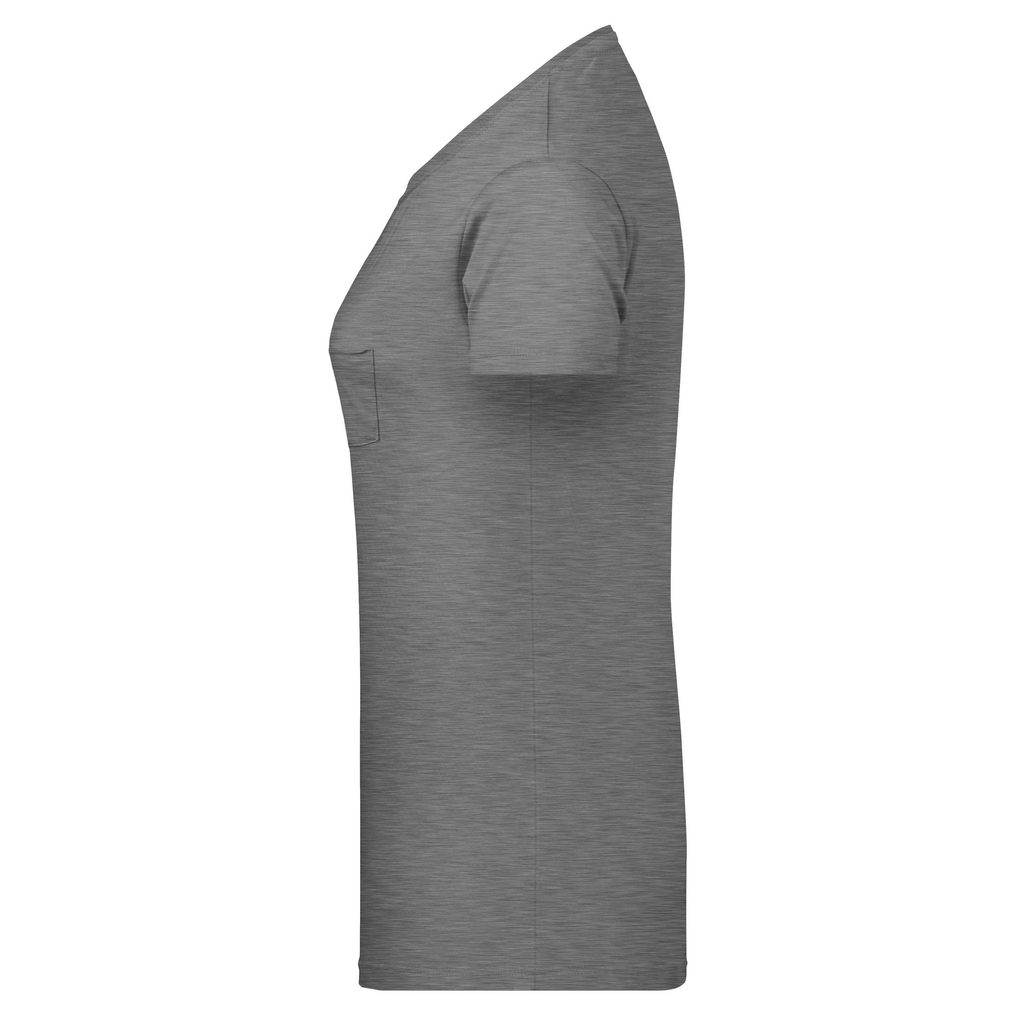 Tričko má nižší okrúhly výstrih a elegantné vrecko so zrolovanými lemami na ľavej strane (7x8 cm). Lemy trička obsahujú prímes elastanu, aby sa tričko ľahko obliekalo a vyzliekalo a zároveň umožňuje maximálnu voľnosť pohybu. Mierne priliehavý strih lichotí ženskej postave a odtrhávacia etiketa zaručuje pohodlie pri nosení.