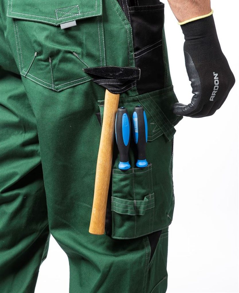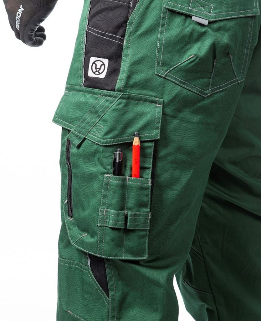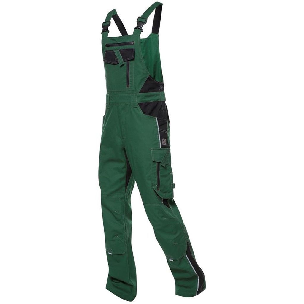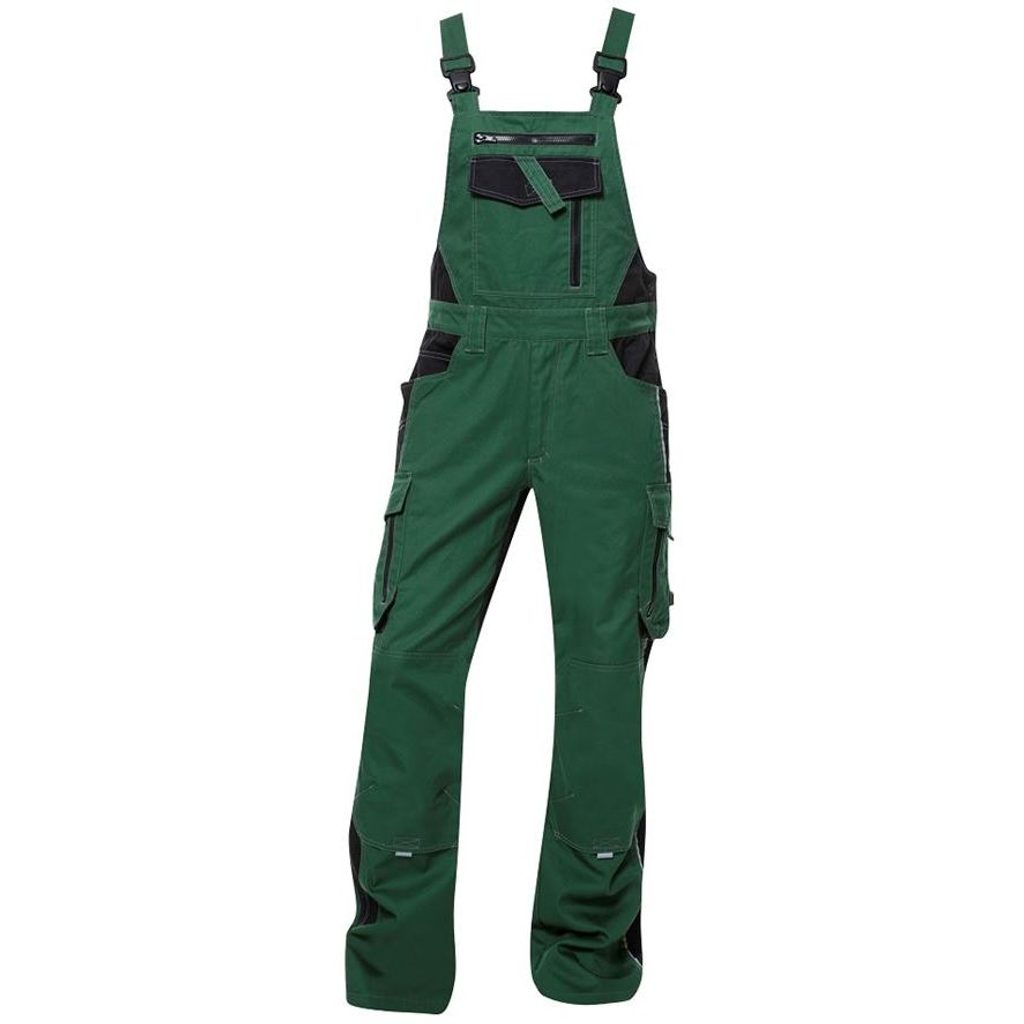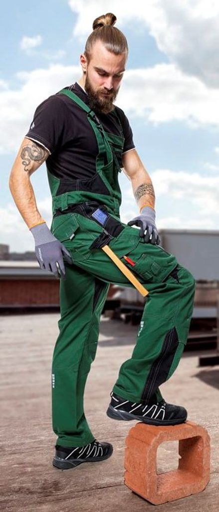 Dizajnové montérkové nohavice so skráteným strihom. Sú priedušné a pohodlné na nosenie vďaka kvalitnej keprovej tkanine s prevahou prírodnej bavlny. Traky na náprsenke sú elastické. Obsahujú veľké množstvo vreciek: 2 predné priehmatové - otvorené vrecká, 2 zadné vrecká kryté klopami, 2 priestranné…